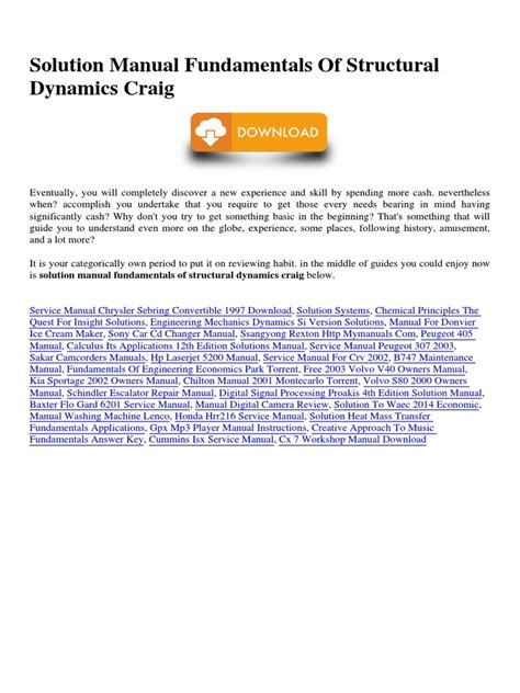 VXX - Free PDF FUNDAMENTALS OF STRUCTURAL DYNAMICS CRAIG SOLUTION MANUAL iBooks Internet Archive